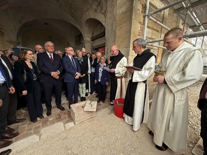 Le vendredi 21 mars 2025, une date chargée de sens pour la communauté cistercienne, s’est tenue la cérémonie de pose de la première pierre de la restauration du Définitoire de l’Abbaye de Cîteaux.